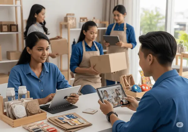 Jawab FAQ, katalog produk, pemesanan otomatis, follow-up keranjang